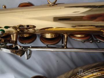 Vendo come da foto sax tenore Grassi modello Leader ritamponato lo scorso anno, perfettamente funzionante e intonato su tutti i registri. Vendo per inutilizzo corredato della sua custodia originale. Lo strumento ancora di produzione esclusivamente italiana si presenta in modo ottimale in tutto e per tutto. Bel suono, meccanica molto comoda e confortevole.
