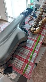 Sax tenore semi-professionale La Ripamonti V-Jazz. Acquistato a dicembre 2022. Finitura opaca. A parte i piccoli e normalissimi segni di ossidazione, il sax è assolutamente perfetto. Usato pochissimo e dotato di un suono pieno e profondo di alto livello, viene venduto comprensivo di custodia rigida professionale. Il prezzo del modello nuovo è pari a € 1960