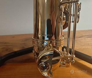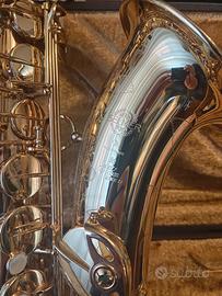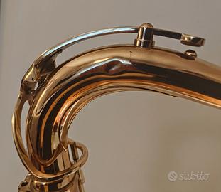 SAX TENORE – SELMER SUPER ACTION 80 Serie II Vendo magnifico sax tenore: Henri SELMER Super Action 80 Serie II. Modello considerato un punto di riferimento tra i sassofoni professionali, noto per la sua eccellente versatilità, ergonomia moderna e suono rotondo. Prodotto dal 1986, l'esemplare presente è del 1993, è molto apprezzato per la sua affidabilità, ottima intonazione e un timbro scuro ma potente, rendendolo adatto sia per la classica che per il jazz e il rock. Strumento usato pochissimo e sostanzialmente da considerarsi quasi al pari di nuovo. Si segnalano una piccolissima ammaccatura sul lato sinistro del chiver, che non pregiudica nulla riguardo al timbro e la voce, ed alcuni graffi in corrispondenza dell'anello d'aggancio al collare. Completo di valigia originale, in perfetto stato, con imbottitura interna in velluto giallo oro. All'interno numerose ance nuove, kit per la pulizia dello strumento (scovoli e panni vari), stik per la lubrificazione delle parti in sughero. Bocchino: Otto Link Edge Tenor 7 in ebanite. Legatura: BG in cuoio con vite in ottone. Collare: Neotech. IMPORTANTE: Accompagna il sassofono il Passaporto Strumenti, vera e propria carta d'identità dello strumento, dove sono indicati il venditore, la data e il Codice dello strumento (Serie 489...) Vendo per inutilizzo. L'importanza dello strumento merita di trovare un sassofonista che voglia fargli esprimere tutte le sue potenzialità. Preferibile eventuale ritiro a mano
