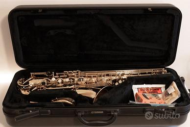 Strumento in perfetto stato, sempre conservato nella sua custodia rigida, mai suonato, tamponi in perfetto stato. In ottone laccato e senza neanche un graffio. Accessori originali e tracolla.