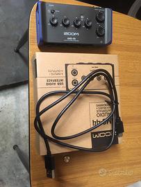 Scheda audio ZOOM AMS-44, versatile, potente (livello di guadagno pre per microfoni poco sensibili), silenziosa, trasparente e comodissima per live streaming. Compatibile con Apple iOS e Android. Usata una sola volta per doppio lavoro e poi riposta (ne ho già un'altra). Vedo completa di tutto.