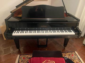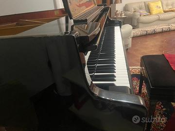 Vendesi splendido pianoforte a mezza coda Schimmel, marchio leader della produzione tedesca. Lo strumento unisce una meccanica precisa a un suono brillante e profondo, ideale sia per lo studio professionale che per l'amatore esigente. • Marca: Schimmel (Braunschweig, Germany) • Modello Classic 155 • Numero di Serie: 148900 (Anno di produzione 1973/74) • Condizioni: Mobile nero lucido in ottime condizioni estetiche, presenta solo qualche piccola sbeccatura della laccatura sul bordo del fianco sinistro ( vedi foto). Interni, corde e martelliera costantemente curati e revisionati. • Manutenzione: Strumento regolarmente accordato e mantenuto in ambiente a umidità controllata. Meccanica fluida e tastiera reattiva. • Incluso nel prezzo: Panca professionale regolabile coordinata (visibile in foto). Il pianoforte è visionabile e disponibile per qualsiasi prova tecnica. Lo strumento si trova in Sardegna Spese di trasporto a carico dell'acquirente (consigliata ditta specializzata).