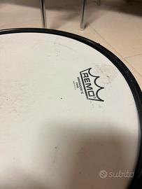 Le pelli battenti del tom da 12' e del timpano sono state sostituite con pelli di maggior qualità rispetto alle originali (Remo emperor clear).