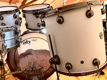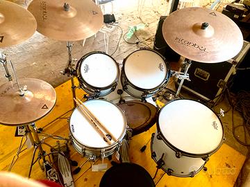 Ds drums Rebel Custom, batteria acustica. Configurazione custom DS, base acero, cerchi e hardware in acciaio, pelli Remo, piatti istambul in lega B20.