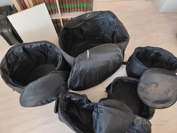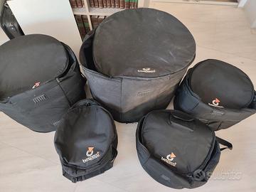 BESPECO SETBAG01 – Set borse per batteria Imbottitura da 15 mm, realizzate in “Oxford cloth 600D” antistrappo, colore nero. Maniglia imbottita e tracolla regolabile. Robuste cerniere lampo cucite con nylon antistrappo. Gommini paracolpi in gomma naturale. Kit di 5 custodie per batteria composto da: BAG618TD – grancassa 22″x18″ BAG610TD – tom 10″x9″, tom 12″x10″ BAG614FD – timpano 14″x14″ BAG614SDT – rullante 14″x5,5″