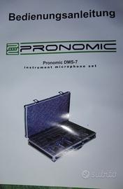 Set di microfoni per batteria acustica marchio Pronomic. Il set è composto da : 7 microfoni di cui due panoramici, compresi attacchi per posizionarli sui vari tamburi. Il kit è compreso di valigetta. Condizioni pari al nuovo. No perditempo!!