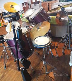 Set di batteria Pearl Export di alta qualità dal suono eccellente. Completo di tamburi, piatti e hardware come da foto. Il kit è in buone condizioni e include tutti accessori necessari