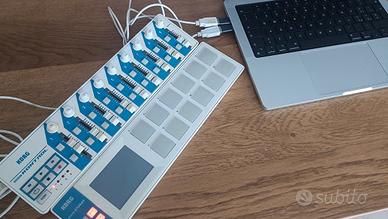 Vendo coppia di controller MIDI Korg (prima serie originale bianco/blu), ideali per home studio e produzione musicale (FL Studio, Ableton, Logic, ecc.). Il pacchetto include: Korg nanoKONTROL: Mixer compatto con 9 fader, 9 manopole e tasti di trasporto. Perfetto per gestire i volumi e le automazioni senza usare il mouse. Korg nanoPAD: 12 pad sensibili alla pressione per caricare batterie o campioni, più un Touchpad X/Y per controllare effetti e filtri in tempo reale.
