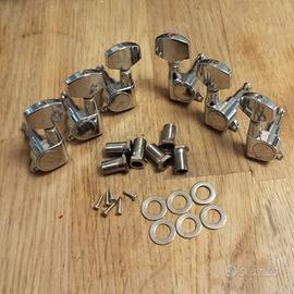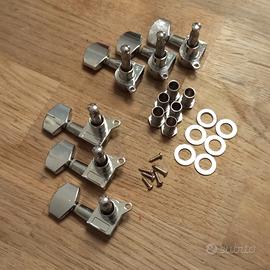 Set meccaniche smontare da una chitarra acustica cui il corriere ha spezzato la paletta. Complete di boccole, rondelle e viti di fissaggio.