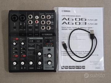 🎤 Mixer/Interfaccia Audio Yamaha AG06 6 canali, preamplificatori D-PRE di alta qualità, effetti integrati e funzione Loopback. Perfetto per registrare, podcast e streaming. Completo di scatola originale.