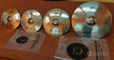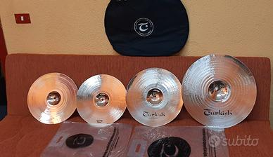 Set completo Piatti TURKISH X-TR BRILLIANT. Bronzo B20. EX DEMO. Praticamente pari al nuovo. Pak Set: Hi-Hat 14/ Crash 16/ Ride 20. Completo della sua borsa originale. Piatti professionali e grande suono. Per qualsiasi informazione, potete contattarmi telefonicamente Angelo. Sono a Vs completa disposizione.