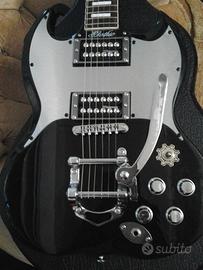mostruosa sg tutta assemblata a mano con legni made in germany e materiali di prima scelta, velocissima e maneggevole con grande varietà di suoni,adatta a tutti i generi.