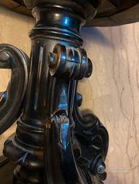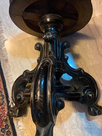 sgabello da pianoforte ottocentesco, in legno ebanizzato con seduta in pelle nera con borchie in tutta la base , tre piedi scolpiti (stile napoleonico / Luigi Filippo). Regolabile in altezza , pelle originale in perfetto stato , vari e piccolissimi buchini causa tarme ( del passato ) .