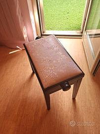 Panca per pianoforte completamente rifinita. La seduta in ecopelle è morbida, liscia e resistente... pitturata, dipinta e cerata. La decorazione 3d è ispirata ai Sakura, i ciliegi in fiore, che ogni anno colorano di rosa il Giappone.