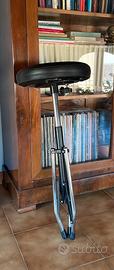 Sgabello leggero e portatile. L’altezza si regola avvitando/svitando la seduta.