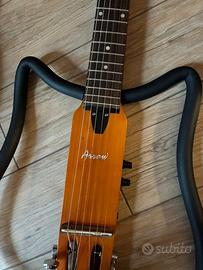 Silent Guitar Arrow con cuffie e cavo per amplificatore: se collegata ad amplificatore diventa una chitarra elettrica. Spedizione in tutta Italia tramite Subito. Disponibile anche a consegna a mano zona Legnano (MI), previo accordo.