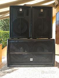 Impianto audio HK tecnologia tedesca, potente e affidabile composto da 2 casse attive PR:0 10XA da 600 watt RMS cadauna + subwoofer attivo PR:0 210 Sub A da 600 watt RMS, il tutto compreso di cover imbottite + mixer BEHRINGER EURORACK MX 1804 X, 18 canali con effetti, compreso di custodia imbottita + 2 supporti per casse + tutti i cavi necessari, 2 xlr da 5 mt e 2 xlr da 10 mt. Materiale pari al nuovo, mai uscito di casa.