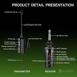 Sistema di Microfono Wireless per Flauto UHF, Microfono Wireless da Agganciare per Flauto, Adatto per Spettacoli dal Vivo, Sistemi PA, Mixer Audio e Altoparlanti, DT-5