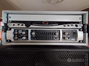 Testata TOUR 450 W. su 4 Ohm, con accordatore BEHRINGER BTR2000 il tutto montato su rack completo di testate di chiusura, casse Peavey TVX250 + TVX115 perfette senza alcun graffio. Una macchina da rock potente e affidabile! NON SPEDISCO, ritirabile a mano.