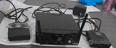 Vendo sistema wireless per chitarra AKG WMS40 Pro2 (set doppio), composto da trasmettitore PT40 e ricevitore SR40. In ottime condizioni, perfettamente funzionante e testabile senza problemi. Utilizzato sempre con cura. Sistema completo per due chitarre, ideale per live e prove.