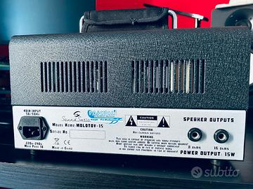 Testata formato lunchbox interamente valvolare (2x12AX7 + 2xEL84), 15W in classe A e attenuatore di potenza a 8W. La modalità Sparkling offre timbriche più cristalline e vintage ricche di dinamica e armoniche, la modalità Flaming fornisce un suono più saturo e più focalizzato sulle medio-basse perfetto (bypass eq). Solidissima e comoda da trasportare con la gigbag inclusa, ottima per l’utilizzo in casa in studio, e piccoli club. Sonorità british che si rifanno ad una vox night train. Valvole: 2x12AX7 + 2xEL84 Attenuatore di Potenza a 8W Potenza: 15W in Classe A Controlli: Gain, Volume EQ: Bass, Treble, Middle Uscite a 8 e 16 Ohm Borsa morbida imbottita inclusa Dimensioni: 305 x H175 x 130 mm Peso: 7,8 Kg Solo consegna a mano in zona Napoli.
