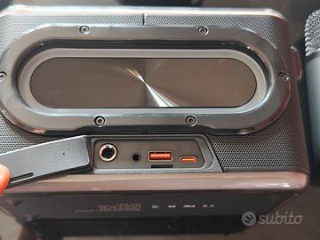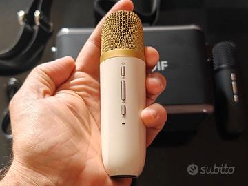 Ottimo sia come speaker per feste grazie alla potenza di picco da 80W e le luci LED incluse sia come Karaoke grazie alla funzione specifica che attenua la voce e ai 2 microfoni wireless inclusi.
