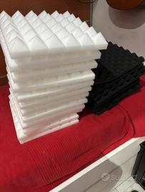 Per inutilizzo vendo spugna fonoassobente 12 pezzi bianchi 30x30 e 8 pezzi neri stesso formato tutto a 20 euro
