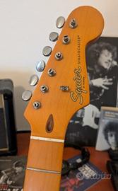 Vendo chitarra elettrica Squier 40th Anniversary Stratocaster Vintage Edition - 2CSB. Chitarra pari al nuovo (il backplate ha ancora la pellicola), acquistata poco più di 2 anni fa da Thomann e praticamente mai suonata, tasti al 100%. Viene venduta senza corde, che ho rimosso ora per le operazioni di pulizia, ma regalo un pacco nuovo di Ernie Ball Regular Slinky 10-46, così ve le mettete come meglio credete. Vendo a 290 euro, zona Napoli Centro (e qualsiasi altro punto raggiungibile con la metro). Per 20 euro in più aggiungo Gigbag Thomann (questa), se aggiungete altri 60 euro vi do anche un Valeton Gp-100 (questo), multieffetto pari al nuovo con scatola originale. Descrizione dal web: La Squier 40th Anniversary Stratocaster, Vintage Edition è un elegante modello che può vantare una collezione di funzionalità superiori per i più esigenti fan di Squier. Con un superbo hardware cromato, battipenna in alluminio anodizzato nero, tastiera incassata in acero con intarsi dot neri, una piastra del manico con incisione che ricorda l'anniversario e una finitura satinata, questa Strat è già in posa, pronta per i riflettori. Preziosi particolari di questo modello commemorativo includono un profilo del manico a "C" e comodo per la migliore suonabilità, meccaniche in stile vintage e ponte vibrato a 6 sellette per performance e stile autentici, e pickup single-coil progettati da Fender con magneti in alnico 5 per ricreare il familiare timbro Strat.