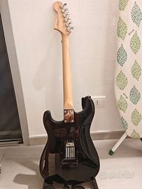 Chitarra squier, manico appena preso nuovo perché i tasti del vecchio erano usurati, pick up al manico fender japponese anni 90 centrale di una squier coreana sempre anni 90 al ponte un humbucker senza marca ad uscita alta.. Chitarra godibile e solida, ottima come muletto o per studiare, presenta graffi superficiali e manca il coperchio posteriore.