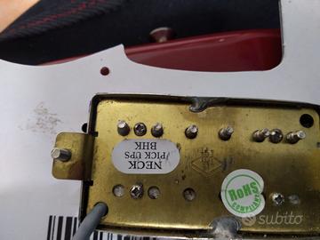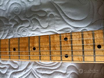 Vendo Squier Stratocaster made in Korea anno 1991 in buone condizioni. Ha un bellissimo manico con tastiera in acero occhiolinato e diversi upgrade. In particolare ha 2 pickup Fender humbucker (montati anche sulla Fender Player Stratocaster), un single coil centrale originale Fender, ponte e sellette originali Fender, meccaniche Gotoh, battipenna madreperlato. E' completa di custodia morbida imbottita. Qualsiasi prova.