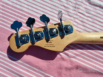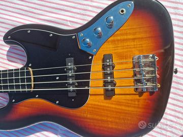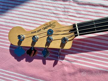 Vendo basso elettrico a quattro corde della Squier Classic Vibe 60s Jazz Bass Fretless Sunburst con due pickup single coil in alnico progettati da Fender e manico C, stile anni Sessanta, colore sfumato marrone. NO SCAMBIO