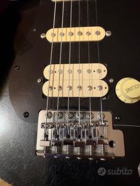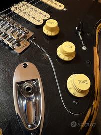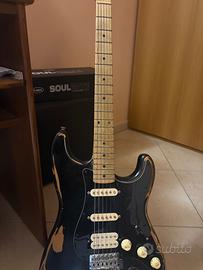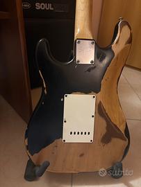 Come da titolo vendo Squier by Fender affinity stratocaster hss, anno 2009, body in tiglio e manico più tastiera in acero, é stato fatto un lavoro di relic per renderla più vissuta. Come lavori ho eseguito, dimostrabili anche in foto i seguenti: - Lavoro di relic - refret con degli standard fret wire Fender - meccaniche autobloccanti wilkinson - cambiata la mascherina con una di colore nero di qualità - cambiati tutti e 3 i pick-up ceramici originali con dei Kent Armstrong: Tweedtone alnico V manico Classic vintage alnico V Humbucker grinder high output ceramico - Schermatura sia del body che della mascherina - Cambiata tutta l’elettronica con componentistica di qualità - Molle al ponte sostituite con delle Gotoh Solo di lavori sono stati spesi circa 300€, ho deciso provare a venderla perché ormai ho abbandonato la chitarra da diversi anni e mi dispiace tenerla ferma lì. In regalo: custodia thomann, poggia chitarra, 2 cavi, plettri, fast fret, olio 65 Dunlop, capocorda, accordatore e tracolla originale Fender. Prezzo trattabile. Niente scambi Preferisco consegna a mano, ma non ho nessun problema a spedire, ovviamente con spese a carico dell’acquirente. Prezzo trattabile!