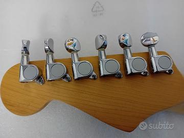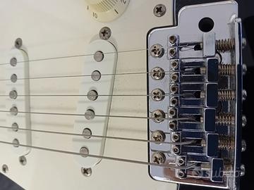 Squier Stratocaster costruita in Korea nel 1998, manico perfetto, battipenna a 3 strati, cassa in legno massello da 45mm, leva vibrato presente.