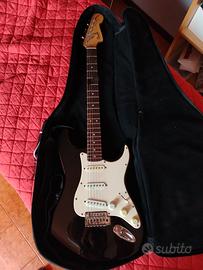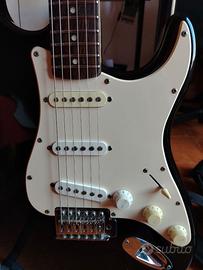 Squier stratocaster del 2010-2011, 2 pick-up sostituiti, funziona tutto tranne il potenziometro del tono del pick-up al ponte, ma tanto non lo usa nessuno ;) Dotata di leva per il ponte e custodia non originale (piuttosto mal ridotta). Disponibile per consegna a mano in zona Modena e dintorni.