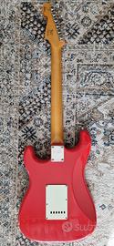 Vendo squier stratocaster Simon Neil, condizioni perfette, tasti 100% nessuna botta, completamente funzionante e performante, sono stati fatti i seguenti aggiornamenti da liutaio esperto, capotasto in osso, ponte gotoh NS510T-FE2, meccaniche vintage autobloccanti Gotoh SD91, pick up original fender Tex Mex, per il resto è rimasta originale, sotto trovate le caratteristiche di base, la chitarra è un gioiellino, colore fiesta red molto bello, tastiera in palissandro. Corpo in ontano Manico acero Profilo manicoModern "C" Materiale tastierapalissandro, 9.5" Radius (241 mm) Scala25.5" (648 mm) Larghezza al capotasto 1.650" (42 mm) Tasti 21 tasti Medium Jumbo Ponte 6-Saddle Vintage-Style Synchronized Tremolo Pick up, 3 single coil Fender Tex Mex selettore a 5 posizioni, Le parti originali che sono state sostituite se richieste sono tutte disponibili e fornibili. Non sono interessato a scambi, posso spedire in tutta italia con tracciabilità della spedizione, massima serietà e disponibilità, qualsiasi prova presso il mio domicilio.