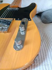 Chitarra usata pochissimo, perfettamente settata da liutaio, manico intonatissimo su tutta la lunghezza. Non ha un graffio, suono tipicamente vintage style, cristallino e ricco di twang!