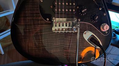 • Corpo: pioppo • Top: impiallacciato in acero fiammato • Manico: acero • Tastiera: acero • Profilo del manico: C • Lunghezza della scala: 648 mm (25,5") • Raggio della tastiera: 241 mm (9,5") • Larghezza del capotasto: 42 mm (1,650") • 21 tasti: Medium • Pick-up: 1 humbucker in ceramica (ponte) e 2 single coil in ceramica (centrale e manico) • 1 controllo per il volume e 2 per il tono • Selettore a 5 vie • Tremolo: a 2 punti sincronizzato con sellette a blocchi • Colore: Black Burst chitarra in ottime condizioni , comprata a settembre 2025 , vendo per passaggio ad altro modello , vista e piaciuta. spedisco in tutta italia.