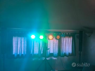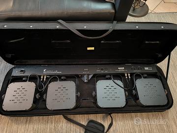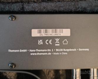 Vendo per inutilizzo barra luci led Stairville Stage Quad LED RGB WW.. PERFETTO!! USATO SOLO UNA VOLTA!! GARANZIA UFFICIALE THOMANN FINO A DICEMBRE 2027. Contattatemi per altre foto ed info aggiuntive, solo se seriamente interessati. Astenersi perditempo Specifiche La combinazione ideale di luce bianca calda e colorata per il palco Può illuminare il centro del palco in bianco e la pista da ballo a colori Precablata per un rapido montaggio e smontaggio Show pre-programmati con uno o due faretti bianchi permanenti Miscelazione omogenea dei colori Funzionamento silenzioso grazie al raffreddamento a convezione I faretti possono essere controllati singolarmente via DMX Tre filettature M10 sul lato superiore Include una robusta borsa per il trasporto della barra Footswitch consigliato: art. 279058 (non incluso, acquistabile separatamente) Dati tecnici: 4 spot LED, ciascuno con 7 LED RGB WW 4-in-1 da 4 watt Controlli: DMX 512 (2/4/5/8/10/18 canali), modalità automatica, controllo musicale, 22 programmi interni Master/slave (anche tramite footswitch) Schermo a LED con quattro pulsanti Angolo del fascio di luce per faretto: circa 40° Attacco da 35 mm per supporto treppiedi Ingresso e uscita DMX: XLR 3 poli Ingresso e uscita di alimentazione: VDE (IEC) Assorbimento massimo di energia: 110 W Alimentazione: AC 100 - 240 V/50-60 Hz Dimensioni della borsa (L x P x A): 1255 x 165 x 375 mm Dimensioni della barra (L x P x A): 1200 x 65 x 300 mm Peso: 12,5 kg