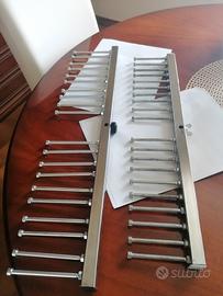 Vendesi STAND (no asta) per bacchette da timpani, vibrafono, marimba, xilofono e glockenspiel (di plastica). Il porta bacchette viene prodotto a mano in lega di alluminio. Possibilità di personalizzazione: disponibile da 2 a 10 paia di bacchette. Nel prezzo non è compresa la spedizione. Per info e domande non esitate a scrivermi in privato