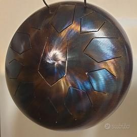 Tamburo armonico da 11 note intonato in 432 hz , trasmettte molta quiete ed è suonabile in 3 modi , potete appoggiarlo su una superficie , sulle gambe oppure appenderlo .