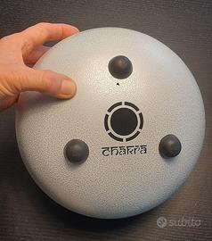 Questo steel tongue drum di misure contenute viene suonato usando i due battenti con la testa di gomma. Ha un set di sette decorazioni chakra ed è un ottimo modo per rilassarsi mentre si lascia vagare la mente liberamente mentre si colpiscono le lingue di metallo variamente accordate. L'handpan ha piedini di gomma e è dotato di una custodia decorata per il trasporto molto pratica.