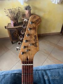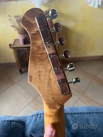 Chitarra che per il costo ha un suono bellissimo, è una squier modificata con manico e pickup di Harley benton, monopola del tono non funzionante. Ha diverse ammaccature che non interferiscono col suono.