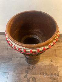 Jembe, diametro 33,5 cm Completo di corde e cerchi. Senza pelle. Compreso nel prezzo, sacca per trasporto imbottita con tasca frontale. Materiale in buono stato