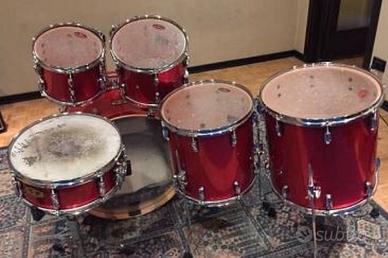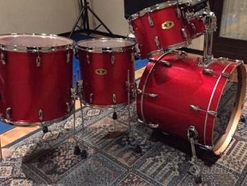 Pearl Vision red sparkling in Betulla a 6 strati di spessore 7,5mm. 2x Grancassa: 22 "x18" (disponibile doppia cassa) Tom: 10"x08". Tom: 12"x09". Tom: 13"x10". Timpano:14"x14". Timpano: 16"x16". Rullante 14"x5,5". (Pelle nuova) Supporti Tom Serie Uni-Lock 900. Supporti Timpani (piedini) Non venfo pezzi separati