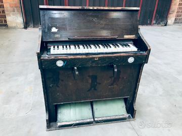 Antico pianoforte "ARMONIUM" non conosco la data precisa, ma sicuro fine 1800. Ha piccole dimensioni, altezza90, larga 85 profonda 52. Non funziona con energia elettrica, ma con delle pedane che soffiano, non è ben funzionante.