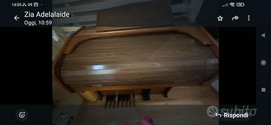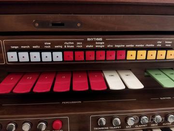 Doppia tastiera,pedaliera, accompagnamenti automatici di vari strumenti musicali, esterno in legno quindi può essere inserito facilmente come mobile d'arredo. In regalo lo sgabello. Le misure sono larghezza 112 cm, altezza 103 cm, profondità 65 cm. ( Le scritte sui tasti sono adesive si tolgono)