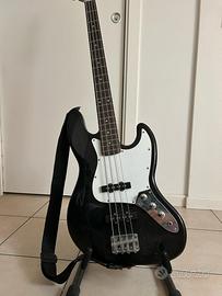 Rocktile Jazz-Style basso elettrico finitura nera, 2 single-coil pick-up 2 regolatori Volume / 1 regolatore Tone amplificatore 15 Watt per basso elettrico con uscita cuffie incluso cinghia, cavo Supporto per il basso di colore nero