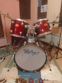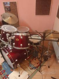 Vendo come nuova, batteria da studio o hobby con rullante mai usato , ancora con imballo originale mod Roling's marca Pearl Target completa di 2 Tom 1 timpano 1 rullante originale nuovo 1 charleston 1 ride 1 cassa con pedale 1 sgabello e tre sordine