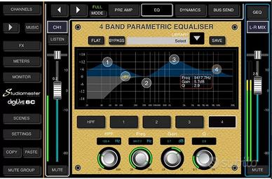Bus interni: 4 FX stereo / 2 AUX mono / PFL stereo / Main Mix