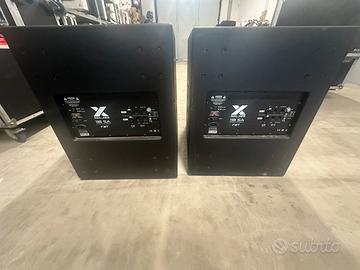 Pannello di controllo con In/Out XLR stereo, Volume, EQ preset, Delay, Inversione di fase 0°/180°, x Indicatori di stato a LED